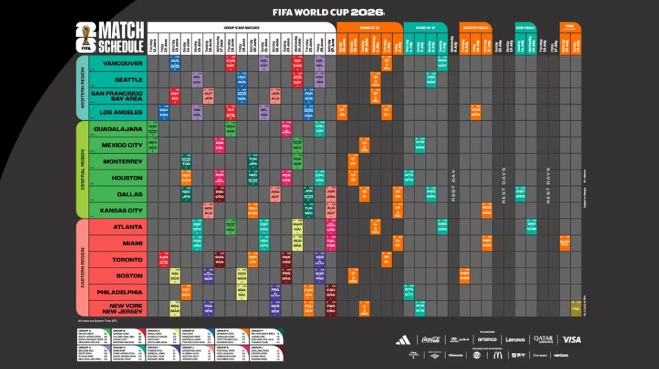 新华社华盛顿12月6日电 国际足联6日公布了2026年美加墨世界杯的完整赛程,揭幕战与决赛分别于北京时间6月12日、7月20日凌晨3点打响。