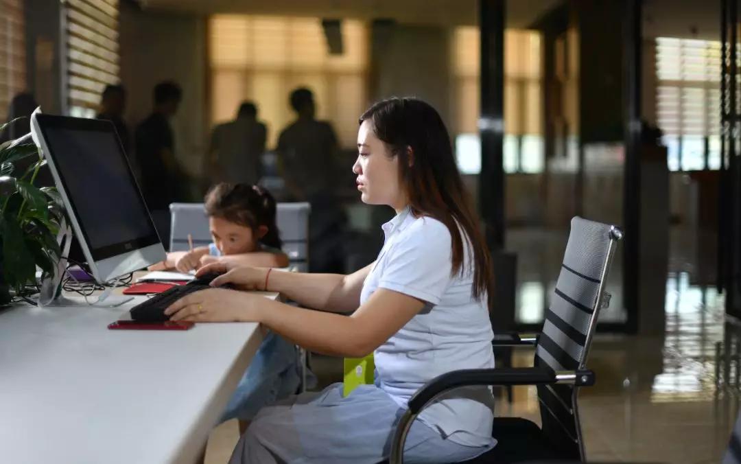 加入“AI豆计划”之后,张金红不出小区就可以上下班,完全省下了通勤时间,有时需要照看女儿,也可以把她接到办公室来,一边带娃一边上班。