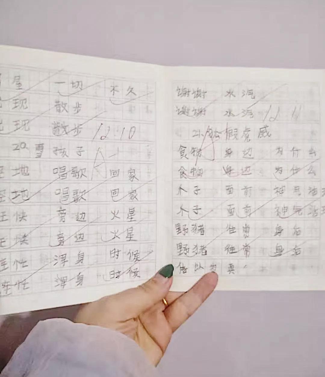 在妈妈的陪伴下女儿作业本里的A+变多了