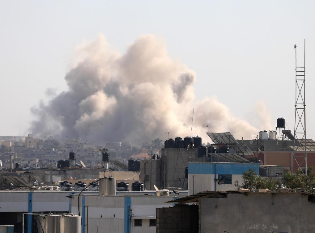 1月18日,加沙地带南部城市汗尤尼斯遭以色列空袭后升起浓烟。新华社发(亚西尔·库迪摄)