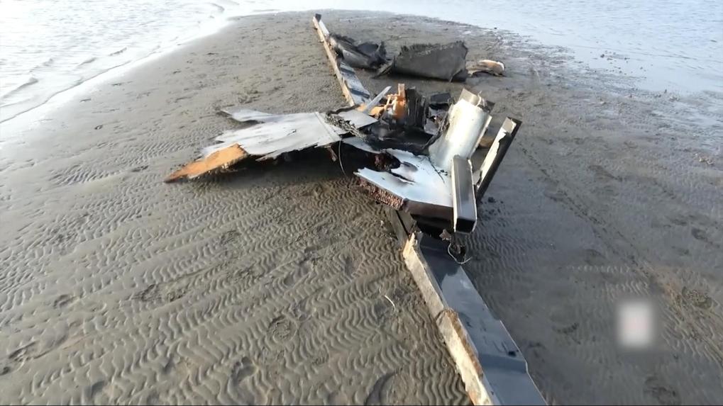 这张2月20日的视频截图显示的是,疑似被胡塞武装击落的美国MQ-9无人机残骸坠落到也门红海城市荷台达的一处海滩上。新华社发
