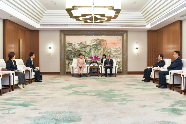 5月7日下午,市委副书记、市长张明康会见韩国全北特别自治道议会议长鞠朱荣恩一行。