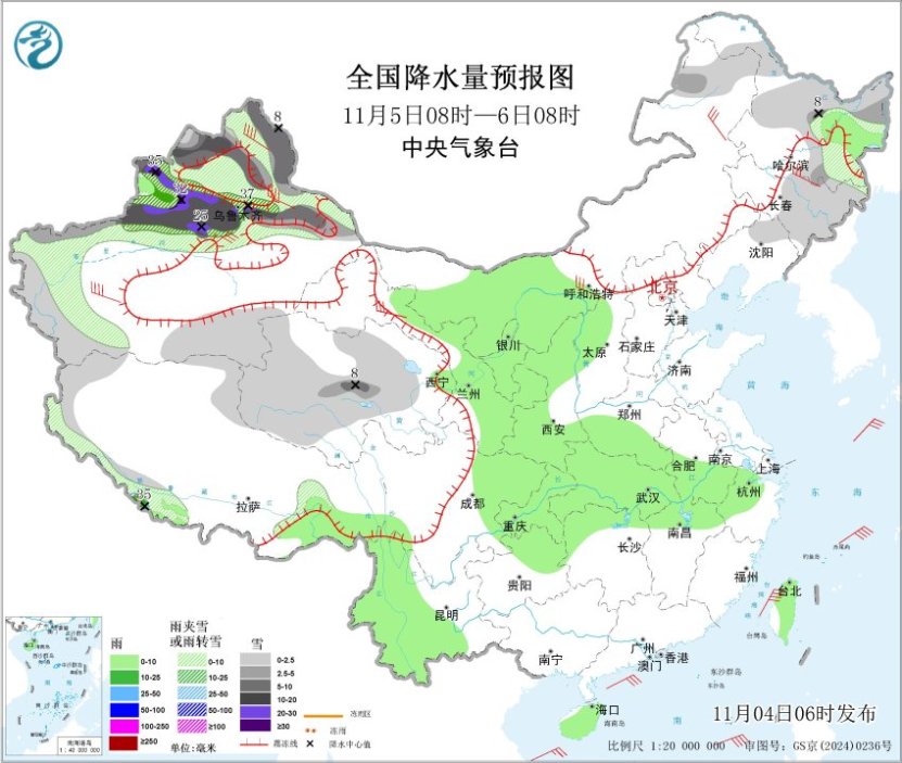 中央气象台最新预报,11月4日夜间至9日,将有一股较强冷空气自西向东影响我国大部地区。其中4日夜间至7日,主要影响新疆、内蒙古西部及青藏高原;8-9日,冷空气继续东移南下将影响长江以北大部地区。预计受冷空气影响,上述地区将出现显著的大风降温天气,新疆西北部、内蒙古西部和东北部、东北地区北部和东部局地降温10℃以上,新疆山口地区风力8~9级、阵风10~11级;新疆北部、内蒙古中东部、黑龙江北部将有较强降雪,新疆北部高海拔地区有暴雨到大暴雪,新增积雪深度8~15厘米,局地可超过20厘米。