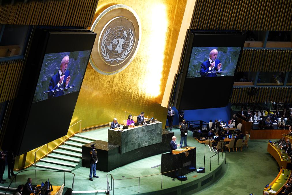 9月23日,在位于纽约的联合国总部,巴西总统卢拉出席第80届联合国大会一般性辩论时发表讲话,强调国际社会应捍卫多边主义和民主制度、反对单边制裁和干涉主权国家,并呼吁维护拉美地区和平。新华社记者吴晓凌摄