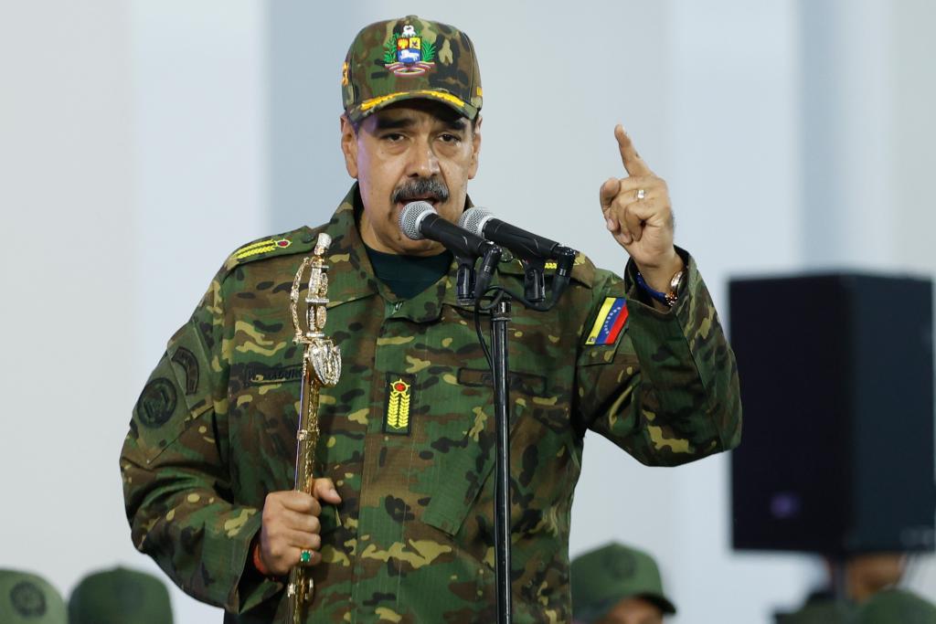 11月25日,委内瑞拉总统马杜罗在加拉加斯举行的游行活动上发表讲话说,由于美国军事威胁,委内瑞拉正面临国家存亡的“决定性时刻”。新华社发