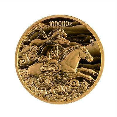 贵金属的工艺更是锦上添花。通过高浮雕、喷珠、多层次喷砂、镜面、做亮、抛光等多种工艺手段,可以刻画出细腻的肌肉线条和立体的祥云纹样。在3克金币上,小白马的马身呈现“玉质感”,意外地契合了“金镶玉”的吉祥文化,光变鳞彩工艺制作的祥云也为整幅作品赋予梦幻的光影氤氲效果。