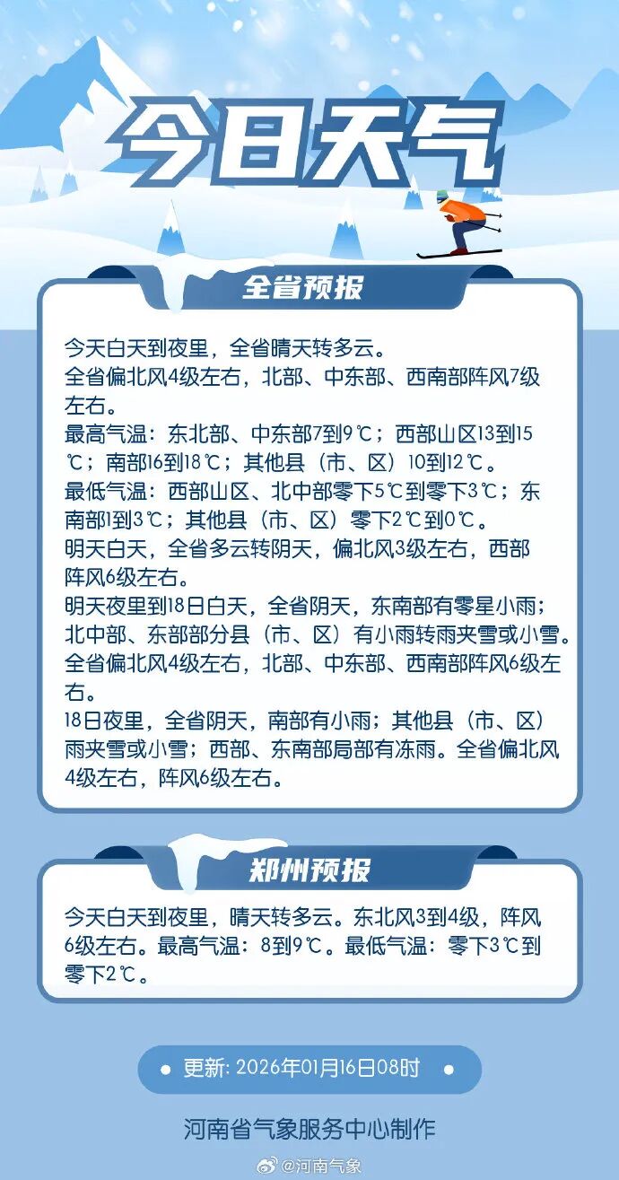 据气象部门预报,1月18日夜间至20日,全省将出现一次强降雪过程。1月16日,河南省防灾减灾救灾委员会办公室发布温馨提示: